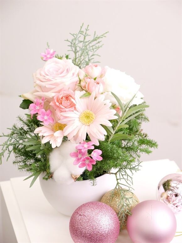 2025クリスマス【PinkChristmas!アレンジメントS】|クリスマス|クリスマス生花|クリスマスブーケ||Christmas