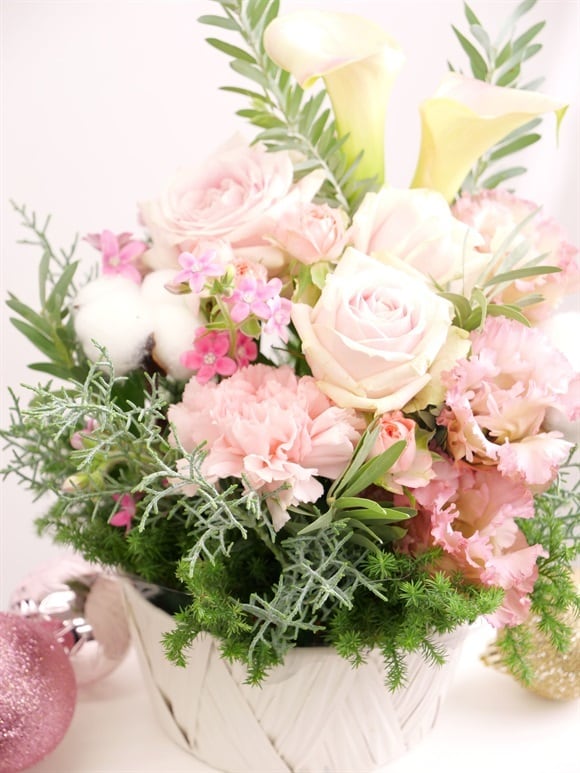 2025クリスマス【PinkChristmas!アレンジメントM】|クリスマス|クリスマス生花|クリスマスブーケ||Christmas