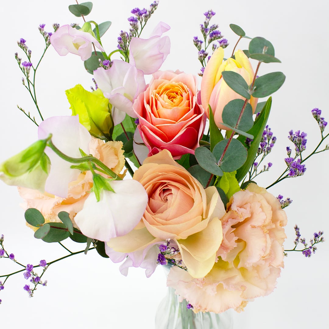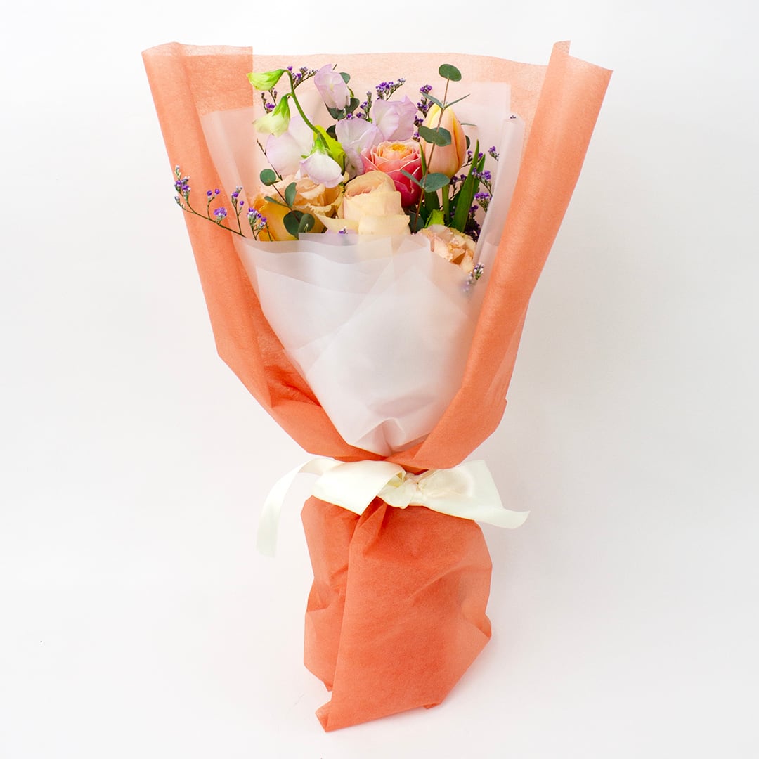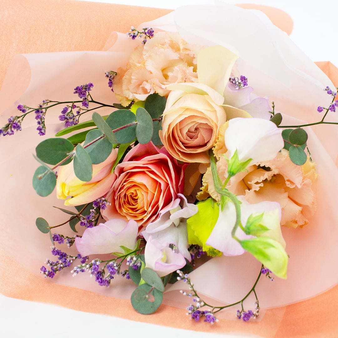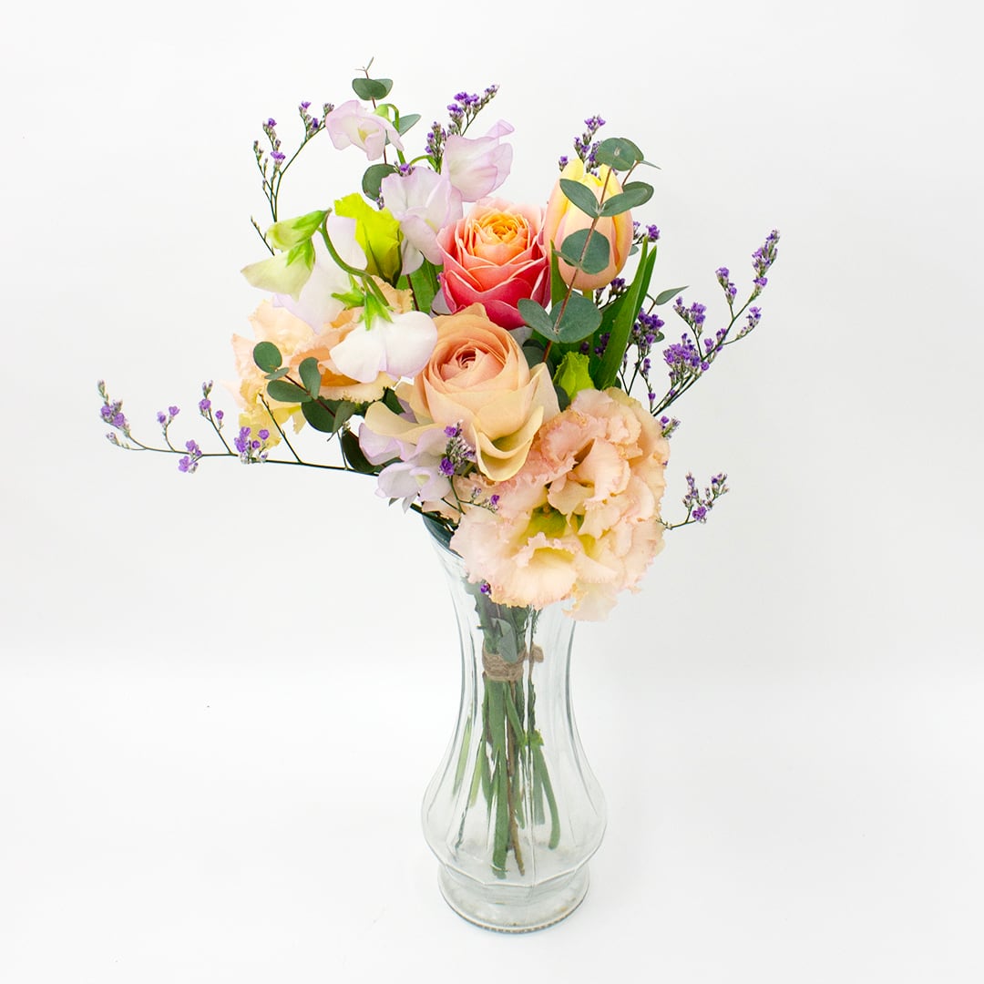 【花材例】 バラ、スイートピー、チューリップ